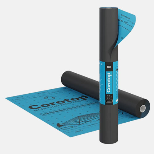 Corotop Blue 140g ir tvaiku caurlaidīga trīsslāņu jumta membrāna, kas izgatavota no funkcionālas plēves, kura abās pusēs ir aizsargāta ar polipropilēna neaustu audumu. Corotop Blue nodrošina noturību pret ūdens iekļūšanu un regulē tvaika plūsmu visā jumta sistēmā. Plus to parastās Blue membrānas versijas atšķirās ar divām 40mm platām līmlentēm malās.